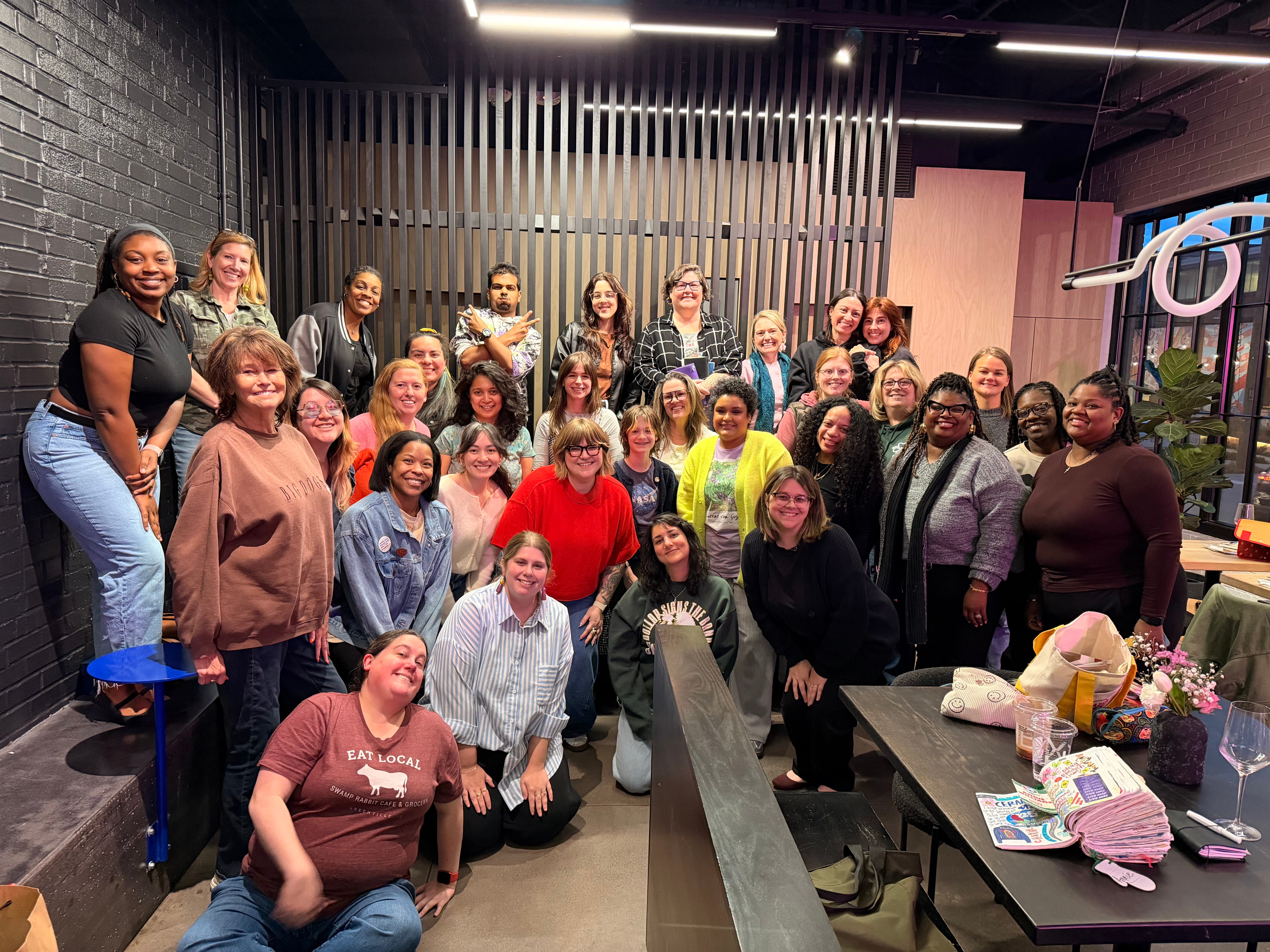 While I was in North Carolina for Ceramajam, I stopped into Good Postage and taught a class on Creative Journaling and Memory Keeping. I was prepared for 2 people to show up and was delighted to have around 35 (some snuck out before the group photo) and it was a freaking blast. Look for more info about that in an upcoming issue.