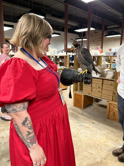 The event was Renaissance Fair/Game of Thrones themed and at the Monday night party, they brought in tons of amazing vendors to entertain and delight us. A Falconer, Henna artist, hair tinsler, reptile zoo (I HELD SNAKES!), axe throwing, and of course, a DJ. It was SO fun. I am currently obsessed with birds of prey and recently kept Elaine up way after bedtime explaining why owl’s ears are uneven, and why that falcon had a little hat on. I am still rocking the hair tinsel, which admittedly, is a little too whimsical for my day-to-day life, but it’s a reminder of a really great night with friends I don’t get to see often enough.