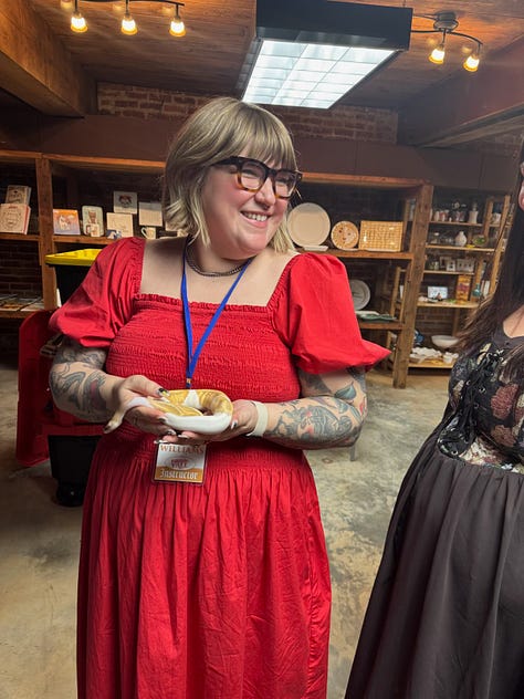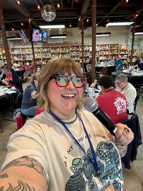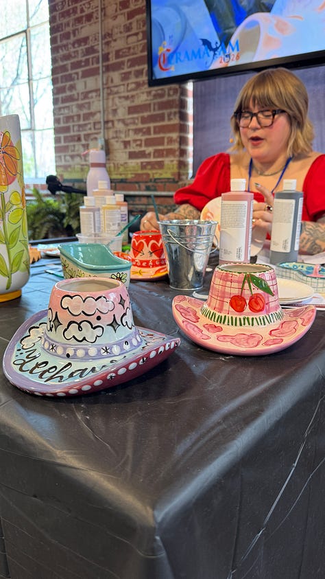 This Ceramajam, I taught a Rhinestone Cowgirl design on my new Cowboy Hat Container. It was Chappell Roan meets Las Vegas Cool Girl Elopement. I loved it.