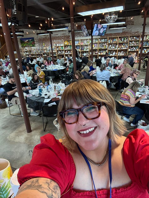 So, when I teach at these ceramic conferences, I’m often teaching a design to paint-your-own-pottery studio owners so they can bring it back to their studio and offer it to their customers as a workshop, finished piece for purchase, or as a sample to inspire. (This is also what my subscription service essentially is, and I’ve been offering that since 2020!)